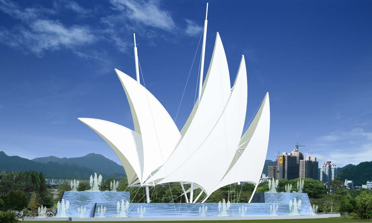 2004年8月,浙南遭云娜臺風(fēng)襲擊時(shí),溫州某體育場、浙南某收費(fèi)站膜結(jié)構(gòu)發(fā)生了整體破壞事故。細(xì)究其設(shè)計(jì)制作安裝可總結(jié)出一些值得重視的經(jīng)驗(yàn)教訓(xùn)。例如該收費(fèi)站膜結(jié)構(gòu)經(jīng)核算發(fā)現(xiàn)原設(shè)計(jì)鋼索直徑偏小,帶點(diǎn)構(gòu)造不盡合理,在強(qiáng)風(fēng)作用下結(jié)構(gòu)破壞也就可以理解了。