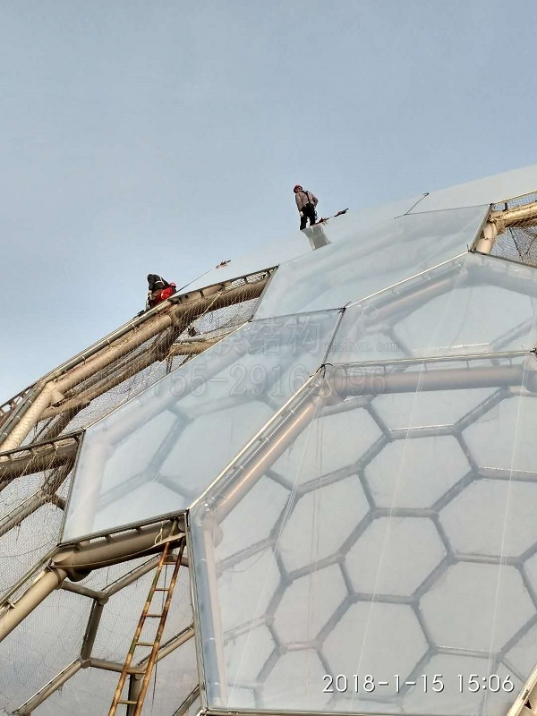 熱烈祝賀:燁興連云港薔薇湖ETFE膜結(jié)構(gòu)生態(tài)園項(xiàng)目開(kāi)始進(jìn)入正式大規(guī)模裝膜階段!