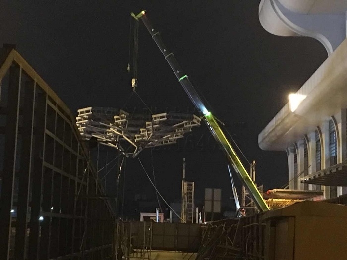 3月22日凌晨4時,燁興-貴港高鐵站ETFE膜結(jié)構(gòu)雨棚項目進行的鋼結(jié)構(gòu)首吊順利完成。在此,對該項目吊裝過程進行回顧。