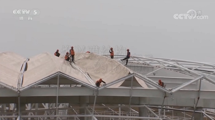燁興-京山網(wǎng)球膜結(jié)構(gòu)項(xiàng)目上央視CCTV-5電視頻道,對(duì)我們而言,既包含了對(duì)我們工作肯定的榮譽(yù),也給我們傳遞了要把項(xiàng)目做好的責(zé)任。我們的技術(shù)和管理人員相信我們能把京山項(xiàng)目做成國內(nèi)經(jīng)典工程,而工人們表現(xiàn)出的額外干勁和熱情,讓我們對(duì)這一點(diǎn)更加確信。