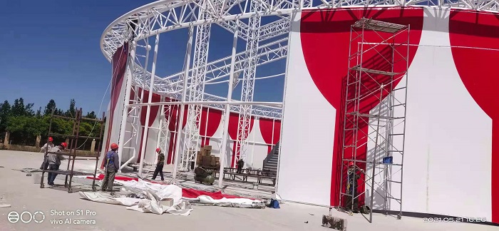 燁興-新疆喀什馬戲團(tuán)膜結(jié)構(gòu)表演館近期已進(jìn)入全面裝膜階段。今天小編將帶來(lái)現(xiàn)場(chǎng)的最新情況。
